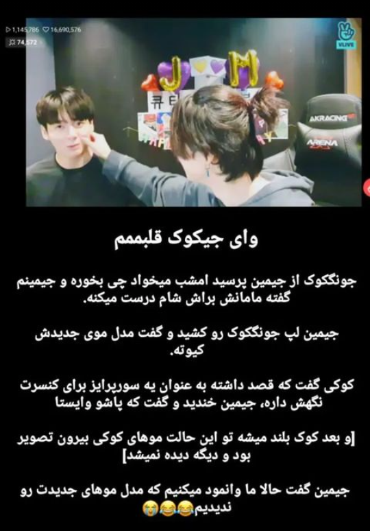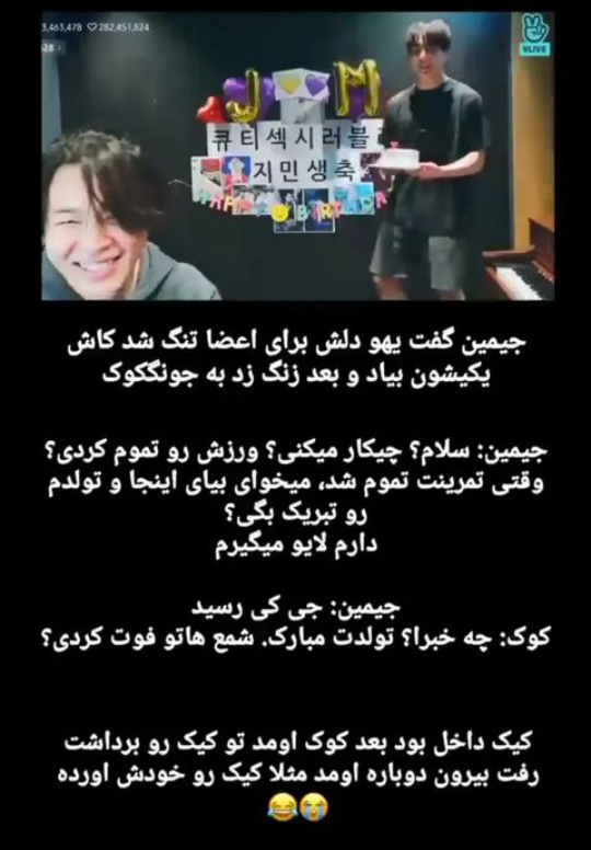 💜امروز خیلی خوشحالم '-' چوووون سر لایو جیمین یعنی راس ۶ و نیم کلاس دارم اونم خصوصی اونم موسیقی 😐🔫 اماااااا استادم پیام داده میگه امروز کلاس تعطیله لایو خوش بگذده 😶 استادمون آرمیه 💔 خیییییلی خوبه البته میدونست من آرمیما 😐🔫💜 و اما این فیلم رو تقدیم میکنم به جیمین جونم توی یوتیوبم میزارم ❤ کپی ممنوع 💔 خدافظ ❤